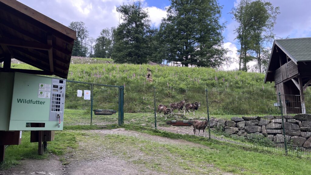 Am Muffel- und Damwildgehege steht ein Futterautomat, an dem Sie für 0,50 Euro eine wiederverwendbare Futterschachtel erwerben können. Das Füttern ist ein besonderes Erlebnis – oft frisst Ihnen das Dam- oder Muffelwild sogar aus der Hand!